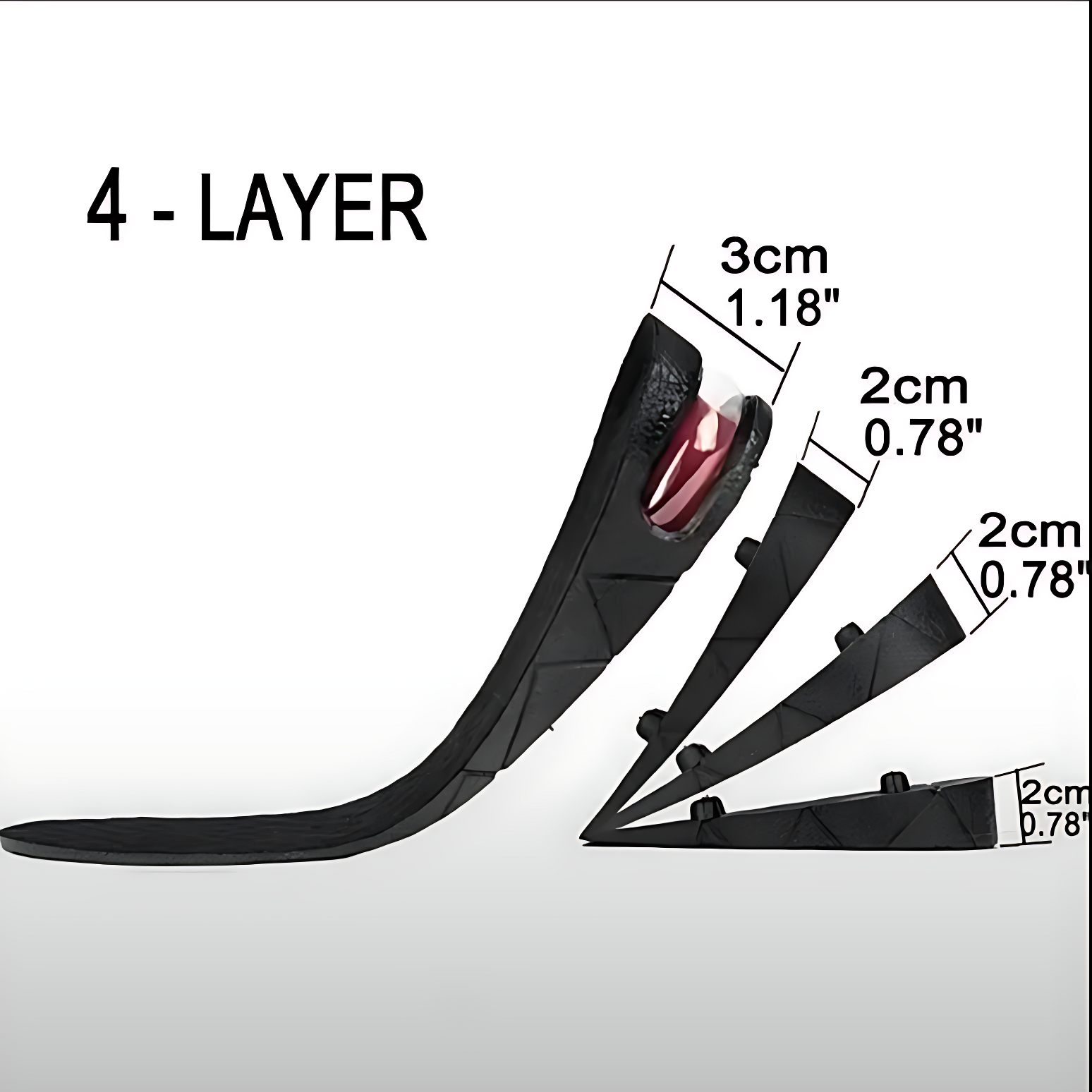 Step up your confidence and comfort with these premium adjustable height-increasing insoles. Designed with multiple detachable layers and a built-in air cushion, these insoles provide superior shock absorption while discreetly adding extra height. Perfect for both men and women, they fit easily into most types of shoes — from sneakers to formal wear. Walk taller, feel confident, and enjoy all-day comfort wherever you go.